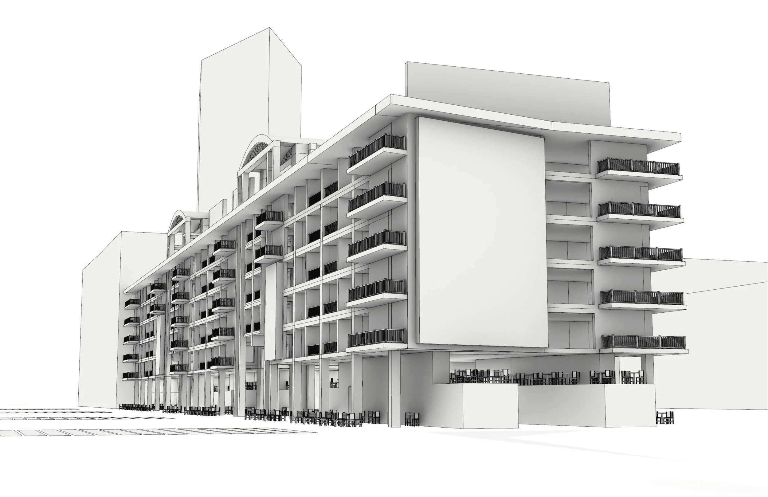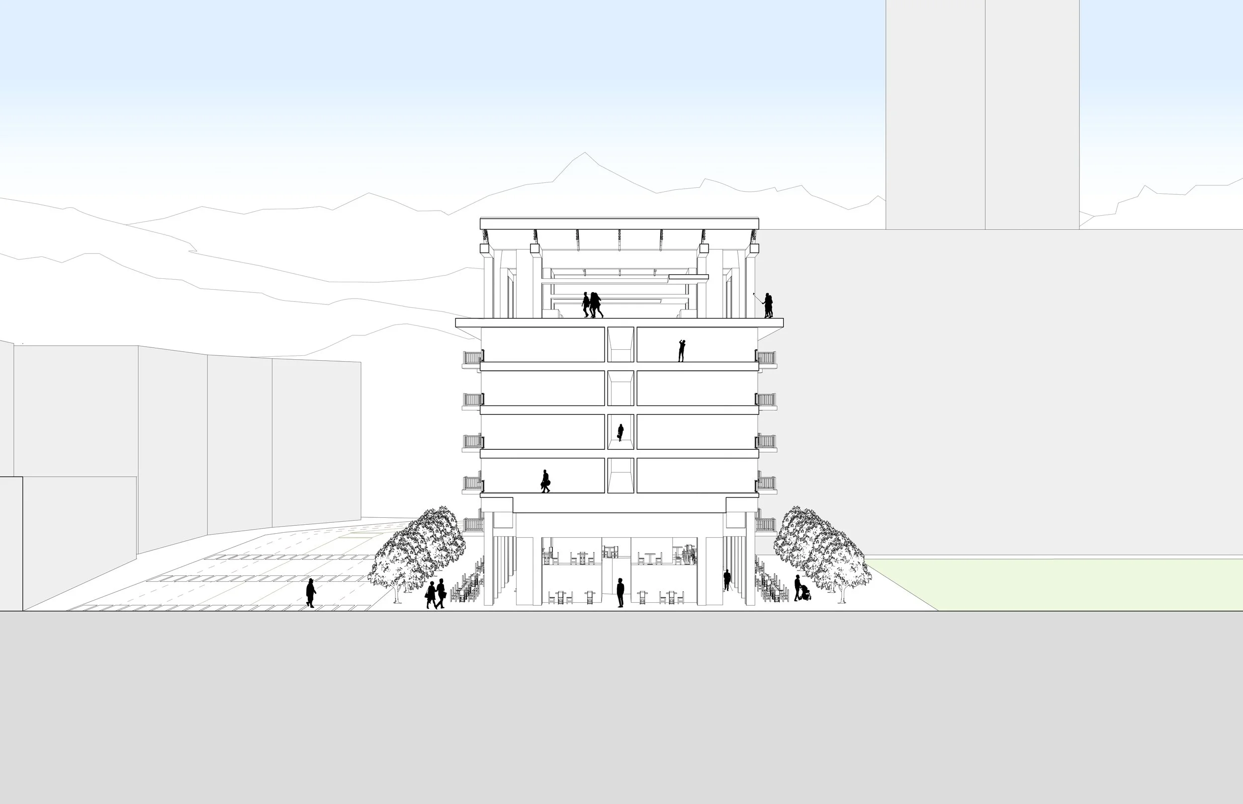 This project reconsiders Northgate Plaza, a Dead Mall in a Low Density Neighborhood of Knoxville, into a lively urban neighborhood. Divided into a plethora of smaller sites, I was tasked with creating a mixed-use residential building adjacent to a proposed Hockey Arena. Through a vibrant arena plaza, ample exciting rooftop amenities, and engaging ground level activation, the energetic node of activity would bring the energy from the arena out to the surrounding site, cultivating community pride and engagement in a lively exciting environment. Watch parties, a convenience store, and a plethora of restaurants and retail would bring together sports fans and families alike. Finally, the commercial and public uses of the building would be appropriately placed based on whether it is arena-related or more family-oriented. Pre-game and post-game activities would energize the site, while offering amenities on non-game days.