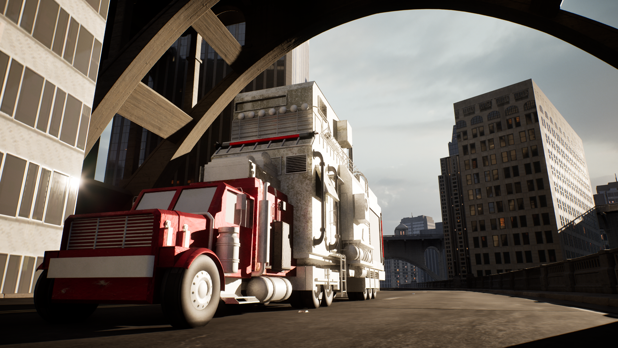 For my project, I was tasked with the long-distance trucker subculture, defined as ”professionals who drive trucks over long distances, characterized by a unique lifestyle on the road, and a close-knit community with its own customs and jargon.” From this, I imagined a world that only interacted through trucks and trucking, creating a landscape where everything was accessible by road, even the interiors of buildings. Trucks became the home, taking on a form that was larger than life. Examples of these trucks were crafted and explored, being influenced by cultural paraphernalia like gaming and the Dolly Parton Stampede. Finally, an animation was produced to bring this highway-fueled reality to life, where long-distance trucking truly ruled the road...and the world.